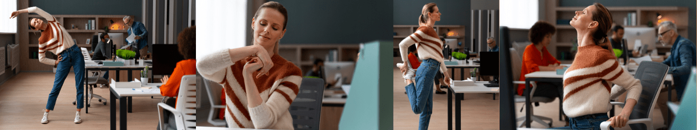 Für das Wohlbefinden am Arbeitsplatz ist es unerlässlich, regelmäßige Bewegungspausen einzubauen. Stehen, gehen und strecken Sie sich regelmäßig, um die Durchblutung anzuregen und Verspannungen vorzubeugen.