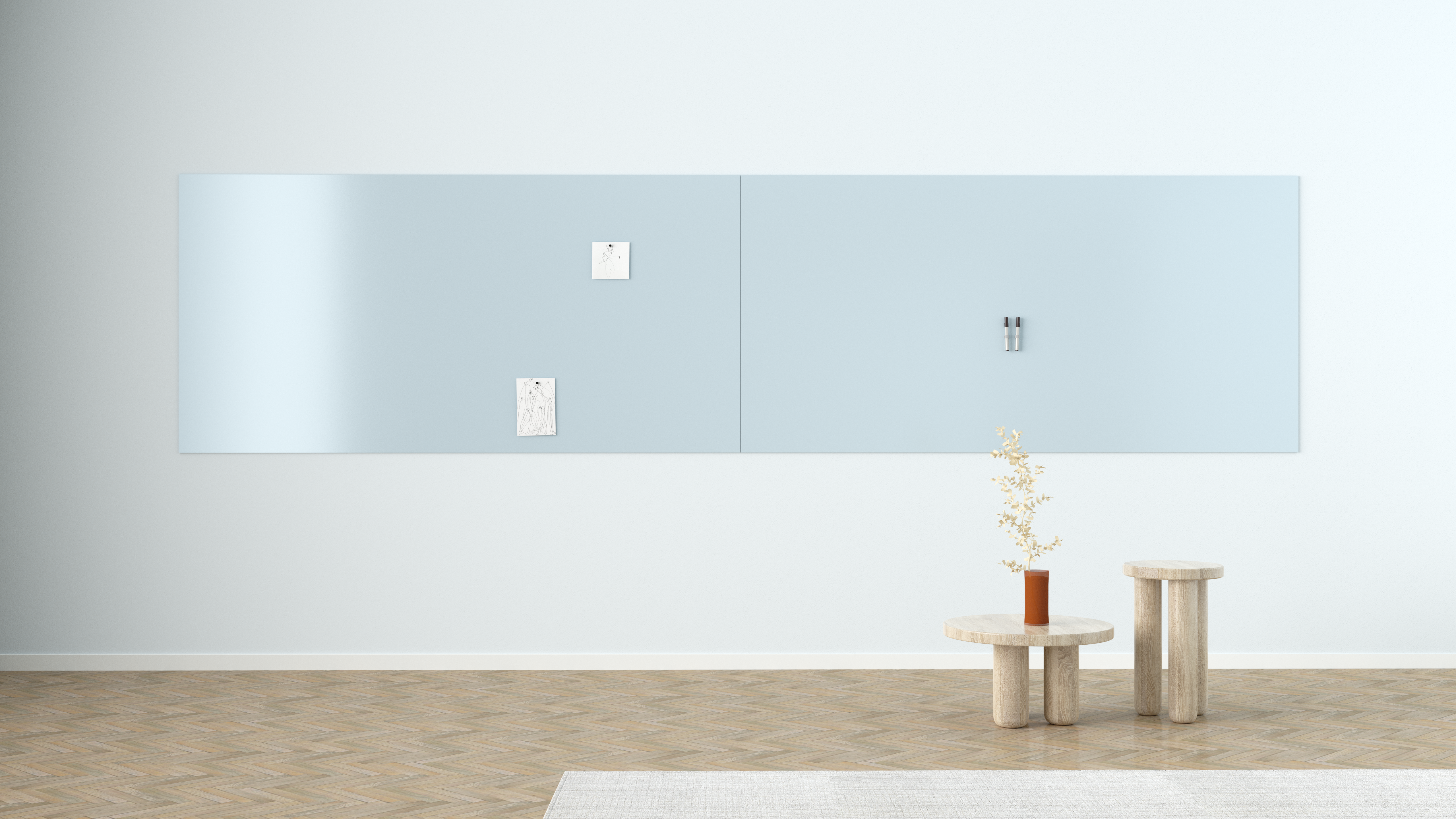 Diese Farben wurden nicht zufällig gewählt, sondern basieren auf umfassenden Moodboards und aktuellen Interieur-Trends. Das Whiteboard fügt sich dadurch nahtlos in moderne Einrichtungskonzepte ein, sei es im Büro, im Konferenzraum oder im kreativen Atelier.